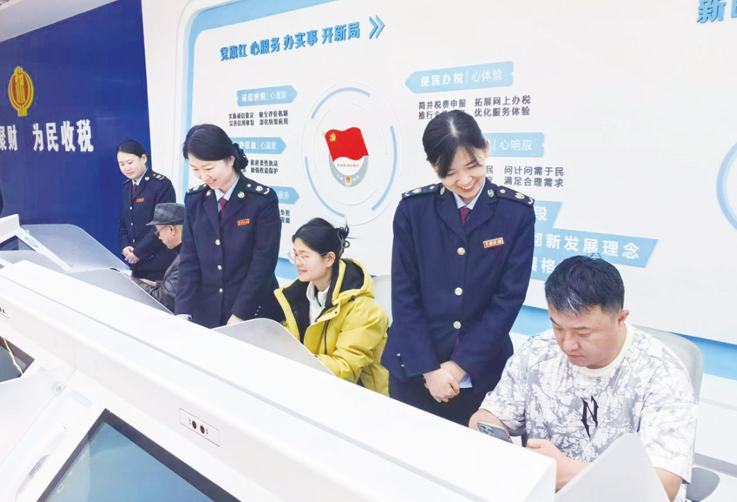 辦稅服務(wù)廳工作人員輔導(dǎo)納稅人辦理涉稅事項(xiàng)