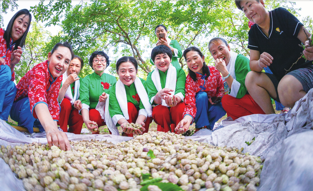 進入4月,夏津縣蘇留莊鎮(zhèn)前屯村的劉傳峰已開始為5月的椹果節(jié)做準備?!翱唇衲晟溟_花的情況,椹果品質會很好,賣完鮮果,加工成的椹果干、桑葉茶會供不應求?!彼A計自己的椹果加工合作社好于往年。2010年,夏津縣對黃河故道古桑樹群進行統(tǒng)一規(guī)劃建設,前屯村的桑樹被納入景區(qū)。劉傳峰抓住機遇建起合作社,做起椹果初加工。如今,全村年加工優(yōu)質桑產品20多噸,經濟效益達150萬元。