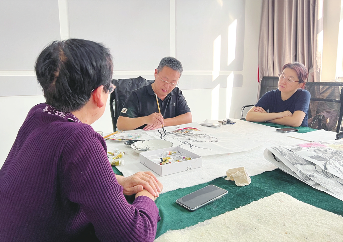 “大家看,畫一只飛翔的翠鳥,要先勾勒出它的眼睛和嘴巴,接著用三青、三綠和酞菁藍(lán)色給頭部上色?!?1月5日,陵城區(qū)臨齊街道西關(guān)社區(qū)新時(shí)代文明實(shí)踐站墨香四溢,每周一次的國畫課正在進(jìn)行,國畫老師一邊示范,一邊耐心講解。十幾名老年學(xué)員聆聽著,執(zhí)筆點(diǎn)墨,感受中華傳統(tǒng)書畫藝術(shù)的魅力。