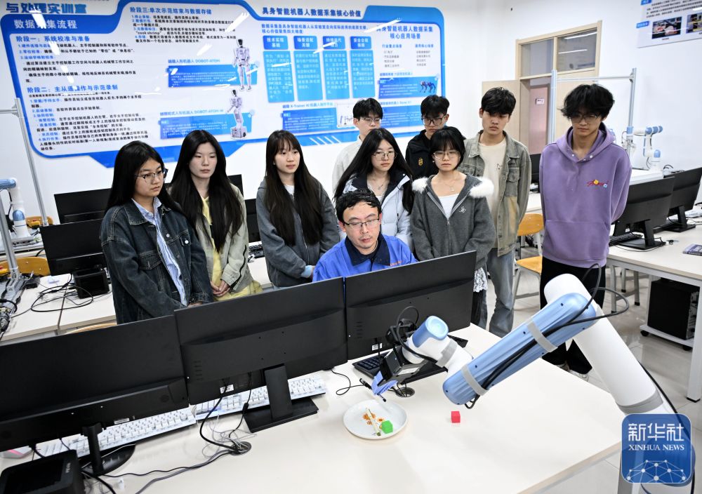 在這里,學(xué)生不僅可以進行機器人操控及訓(xùn)練,對機器人進行二次開發(fā),還可以學(xué)習(xí)機器人設(shè)備運維、數(shù)據(jù)采集、售后服務(wù)等,掌握當(dāng)下具身智能機器人產(chǎn)業(yè)所需的復(fù)合型技能。