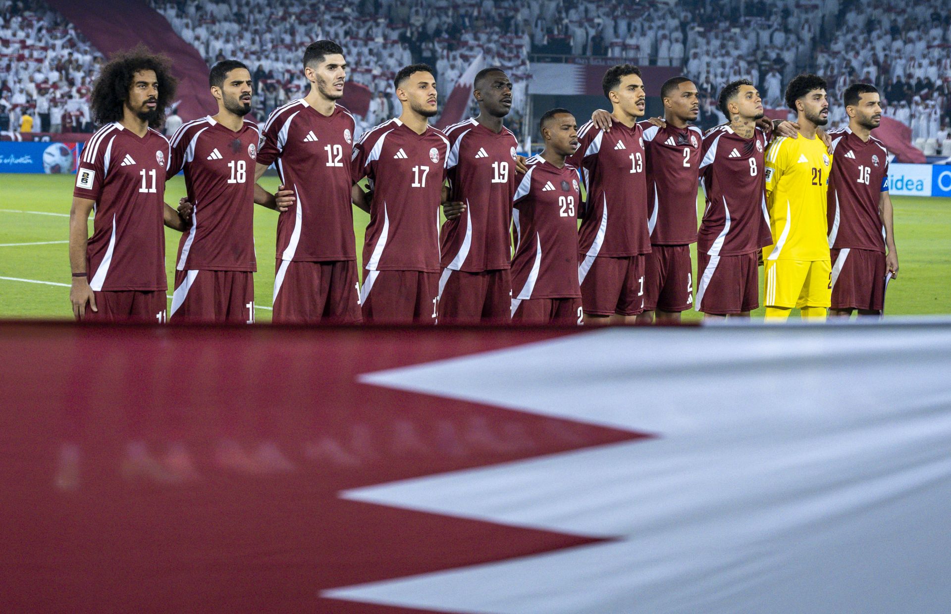 10月14日,卡塔爾隊(duì)首發(fā)球員在比賽前。