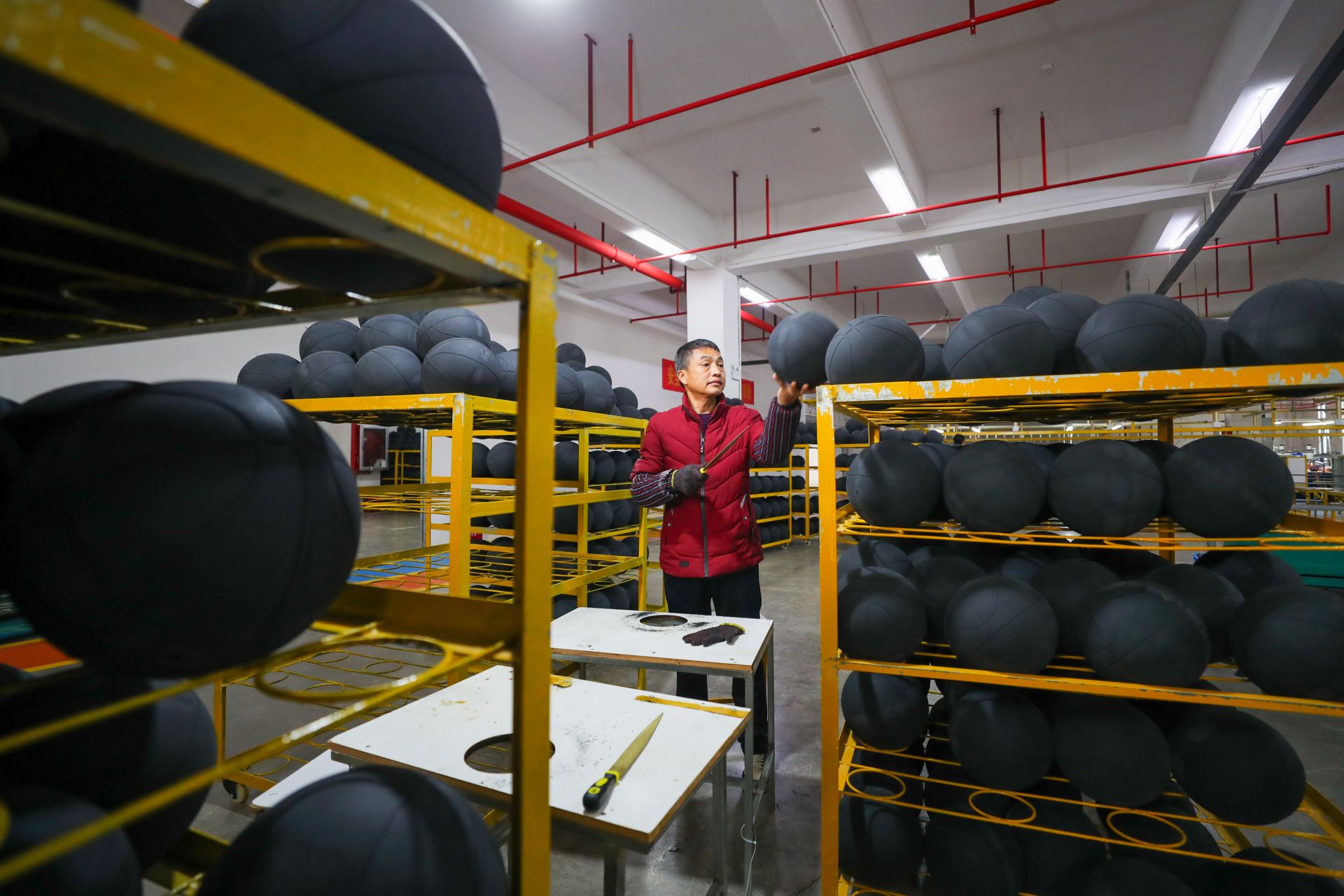 走進(jìn)生產(chǎn)車(chē)間,工人們各司其職,在纏線、貼皮、硫化等工序上有條不紊地忙碌,自動(dòng)化設(shè)備與人工高效協(xié)作,一只只球類(lèi)產(chǎn)品快速成型、接連下線。