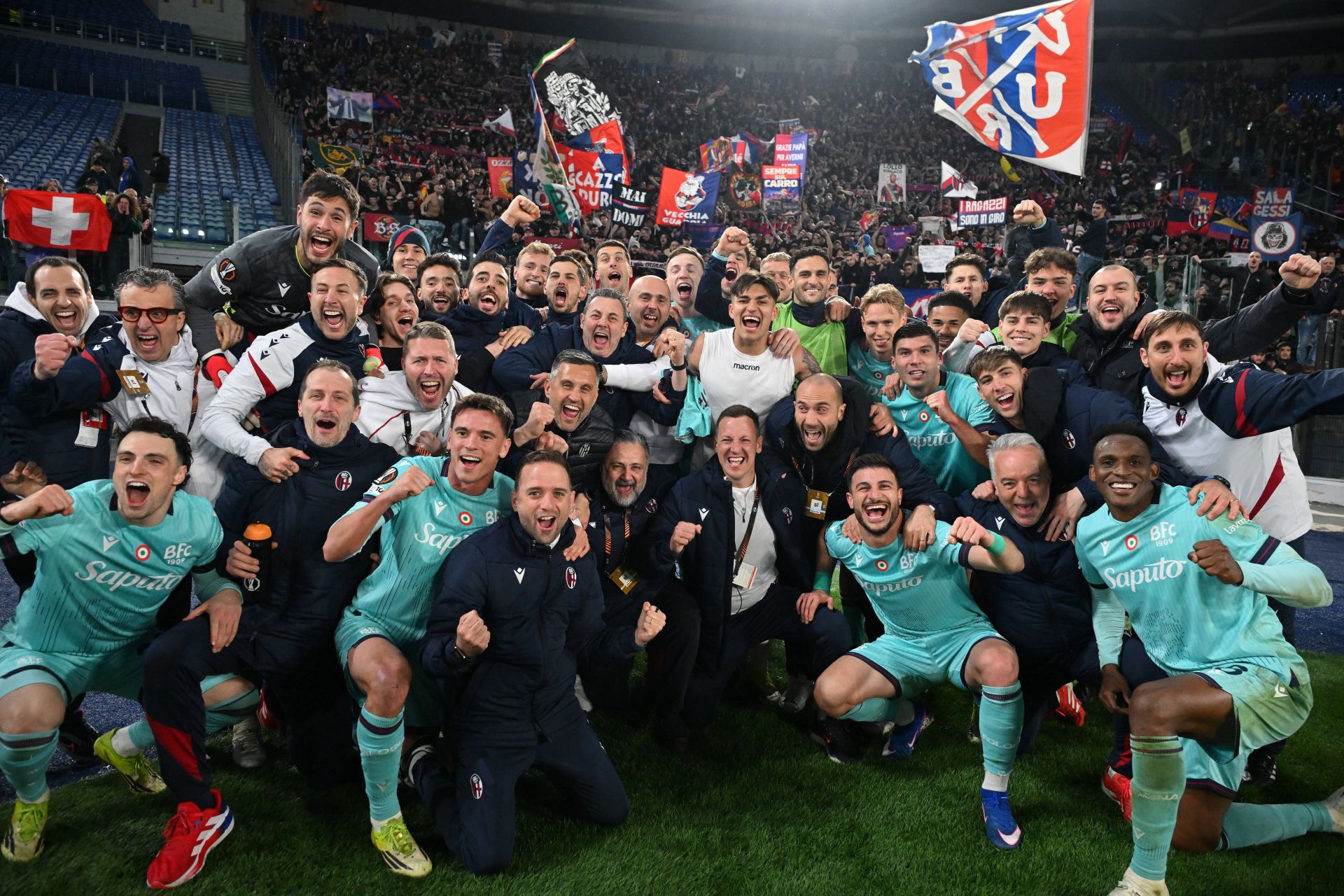 3月19日,博洛尼亞隊球員慶祝勝利。