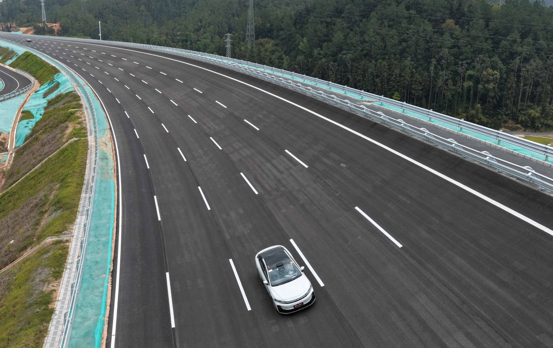 3月20日,車(chē)輛在中國(guó)汽研南方試驗(yàn)場(chǎng)行駛(無(wú)人機(jī)照片)。