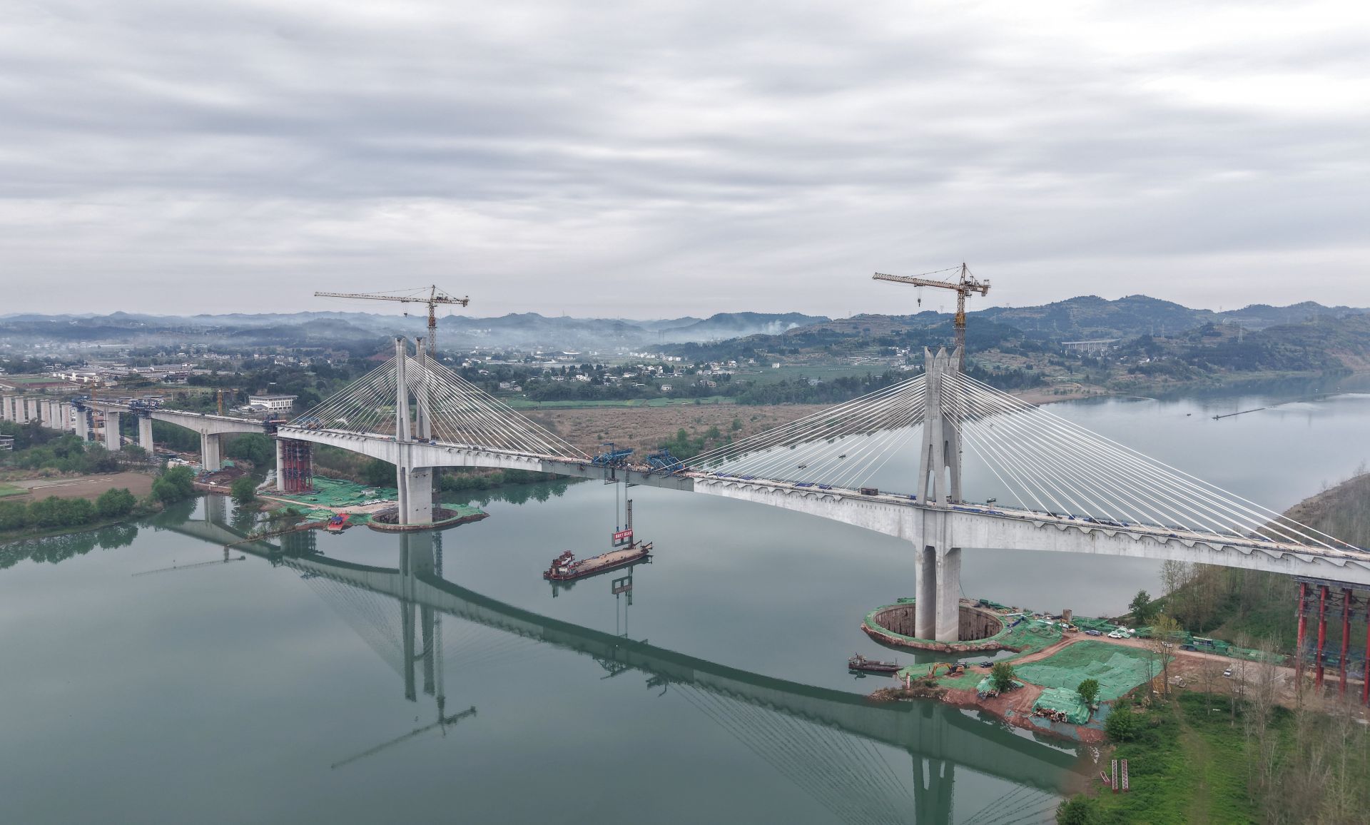 嘉陵江特大橋位于南充市順慶區(qū)與高坪區(qū)交界處,是成達(dá)萬(wàn)高鐵全線“3隧4橋”重難點(diǎn)控制性工程之一。