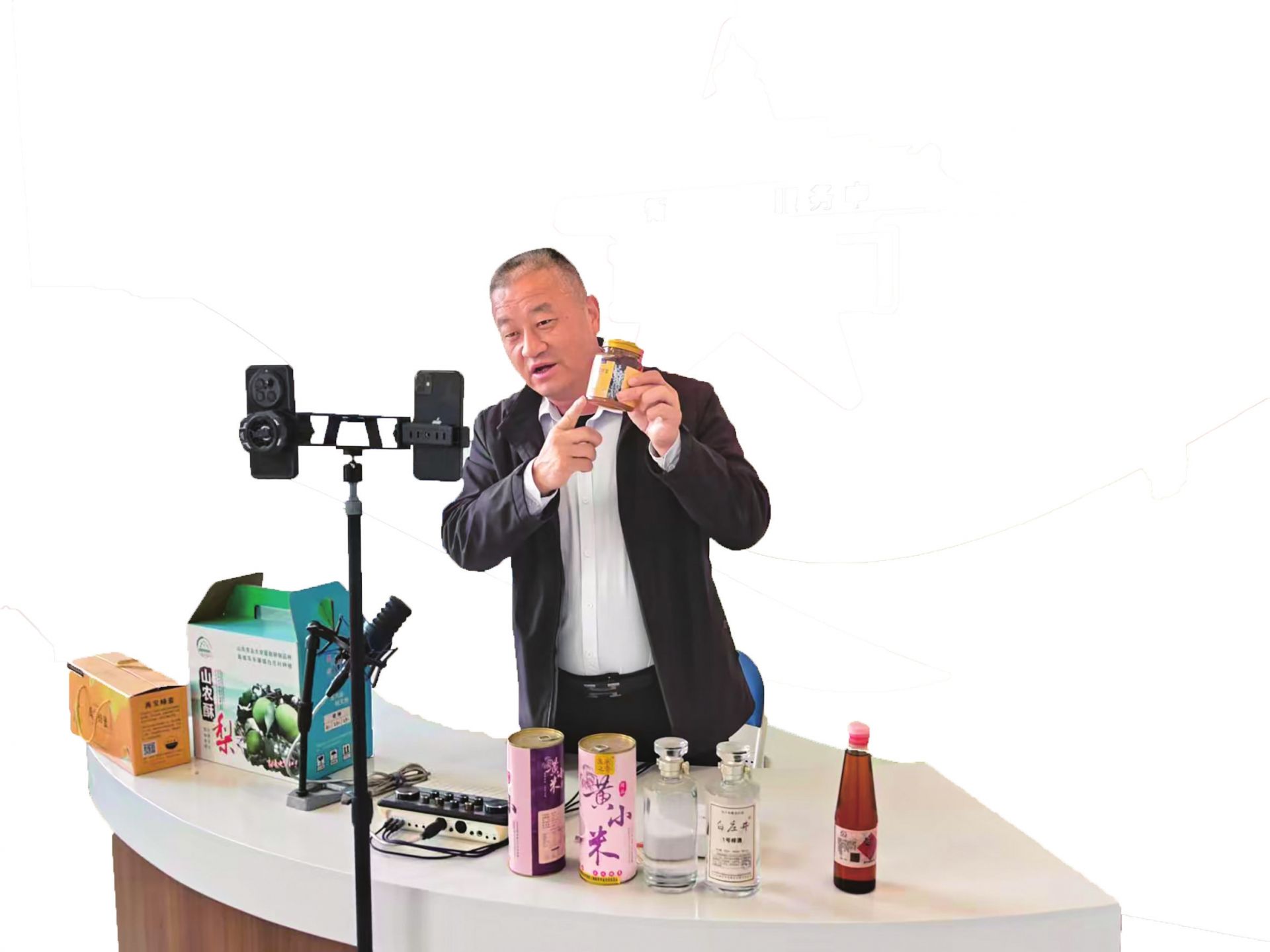 “電商支書”丁建廣在直播間推介當(dāng)?shù)靥厣r(nóng)產(chǎn)品