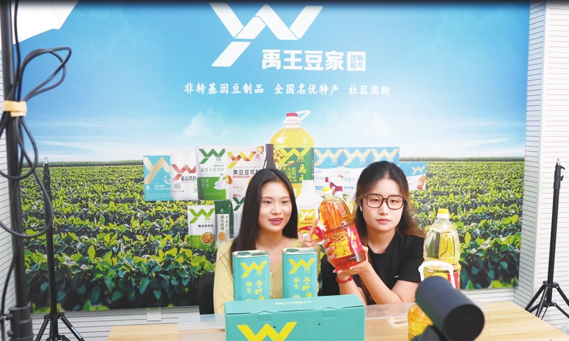 禹王豆家直播間內(nèi),主播正在介紹產(chǎn)品