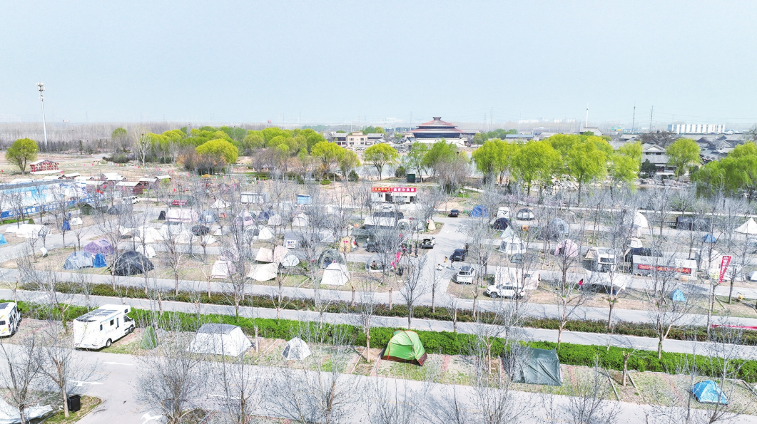 司書娜介紹,露營(yíng)大會(huì)啟幕前,工作人員已對(duì)露營(yíng)基地的水、電等設(shè)施進(jìn)行了全面檢修維護(hù),還新建了便民商店、衛(wèi)生間等基礎(chǔ)設(shè)施,安保人員24小時(shí)巡邏,全程保障游客安全?!罢麄€(gè)露營(yíng)基地可容納200余頂帳篷,目前已基本滿員?!甭稜I(yíng)大會(huì)組織人員趙慶祝介紹,自3月1日起,他們通過短視頻、直播等形式開展宣傳預(yù)熱,原定的露營(yíng)場(chǎng)地不到一周便預(yù)約滿額。為此,他們及時(shí)調(diào)整規(guī)劃,在原有基礎(chǔ)上將露營(yíng)基地面積擴(kuò)大一倍。值得一提的是,中國(guó)驛商業(yè)街區(qū)同步開展野餐活動(dòng),南街湖心廣場(chǎng)配備了桌椅、爐具等,游客僅需攜帶食材,即可動(dòng)手制作美食、享受野餐時(shí)光。
